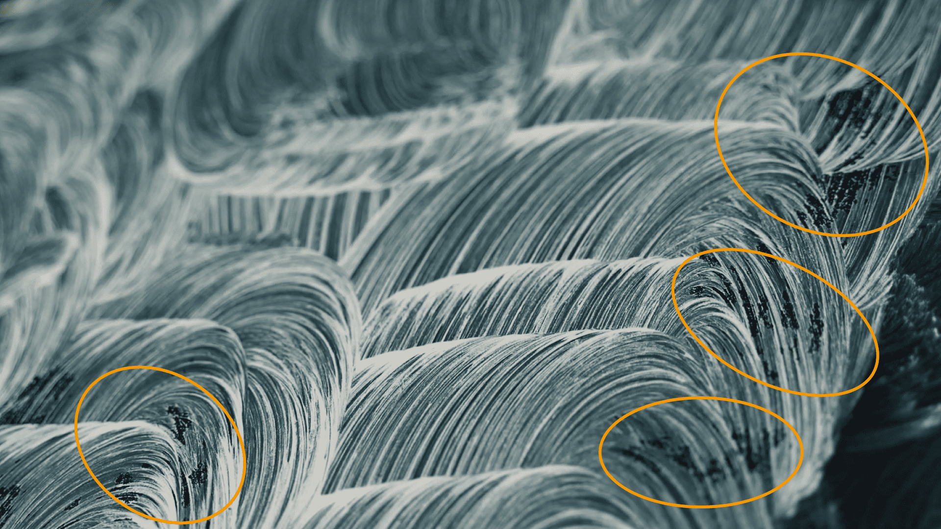玻璃表面上附著大量的鐵粉。是較為少見的情況。