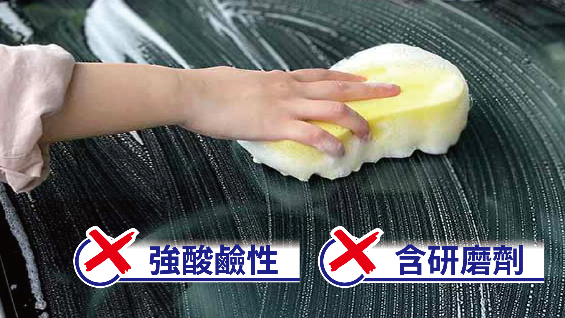 盡量避免使用強酸鹼、含有研磨劑的產品。