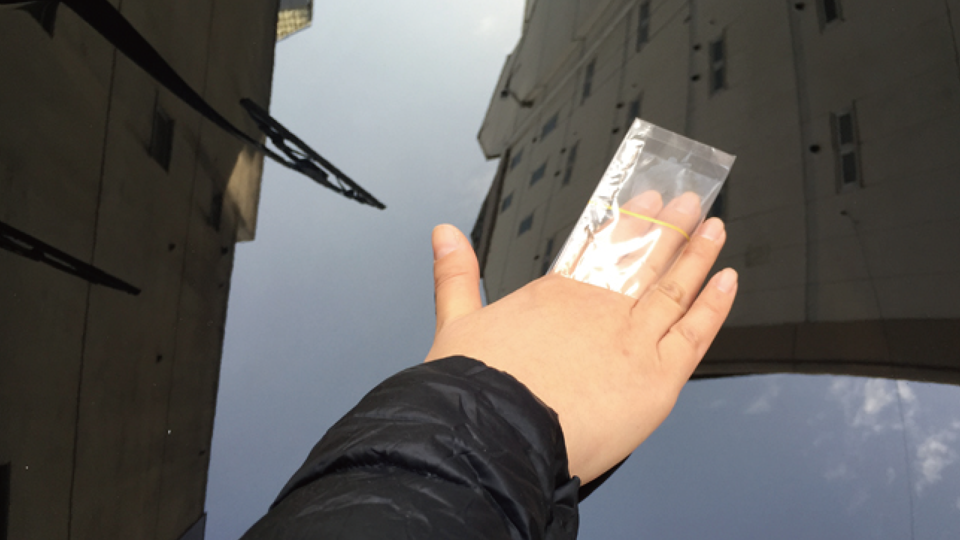 使用鐵粉清潔的用品仔細清潔玻璃表面後,重新施工免雨刷。