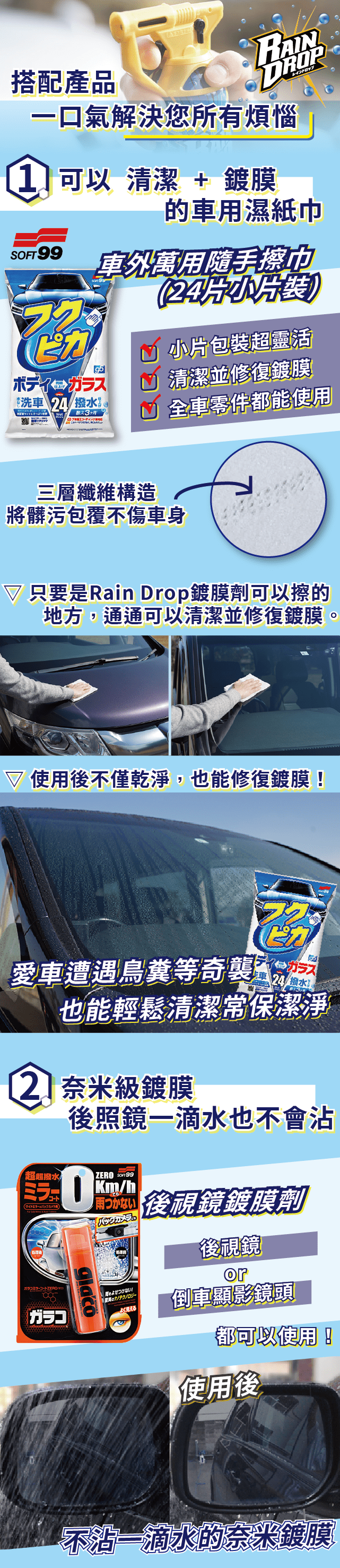 1.Rain Drop 鍍膜劑:全車撥水鍍膜