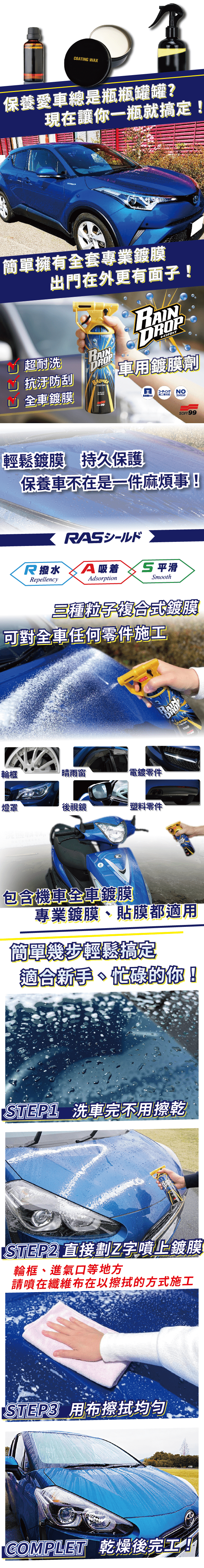 1.Rain Drop 鍍膜劑:全車撥水鍍膜