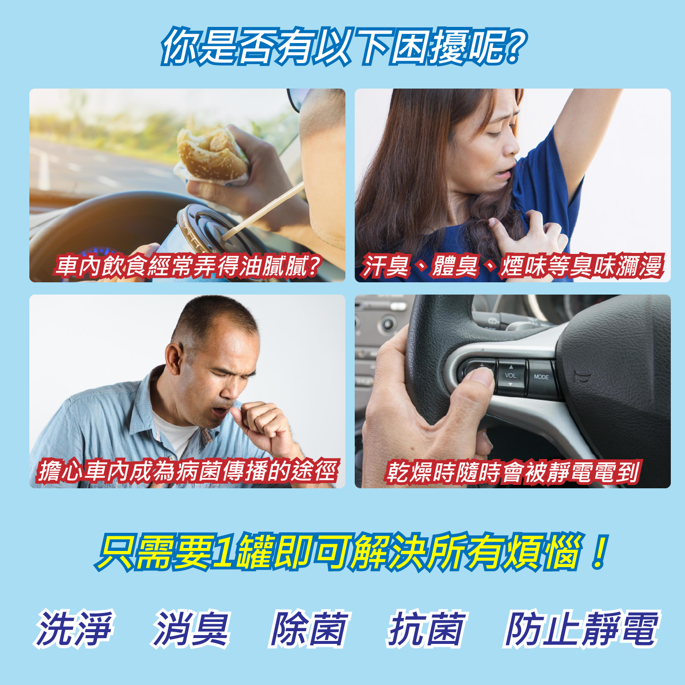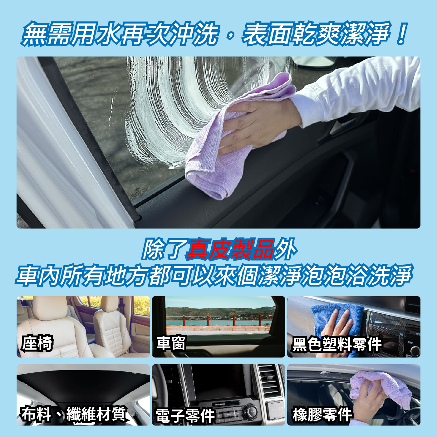 | 1.只需一瓶,即可徹底清潔無法用水清洗的車內裝製品,帶來如同水洗般清爽潔淨的效果。 2.全新開發「高密度綿密泡沫」,完全分解水性及油性汙垢,達到深層清潔效果。 3.不僅用於織布座椅,還可用於安全帶、方向盤、排擋桿、儀表板、車窗玻璃、車頂等車內裝製品。(真皮材質除外) 4.具備除臭、抗菌、除菌、去除病毒及防靜電等多重功效,無香味設計,打造清潔又舒適的車內空間。※並非所有細菌與病毒都有效。 |