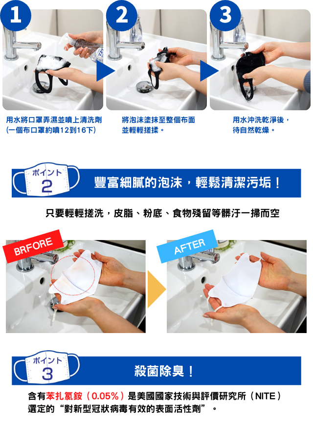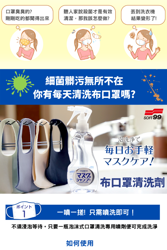 A5: 可使用於任何可水洗的口罩。使用前請同時確認口罩的說明書。