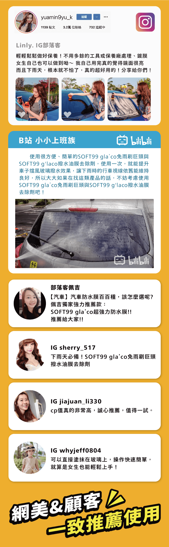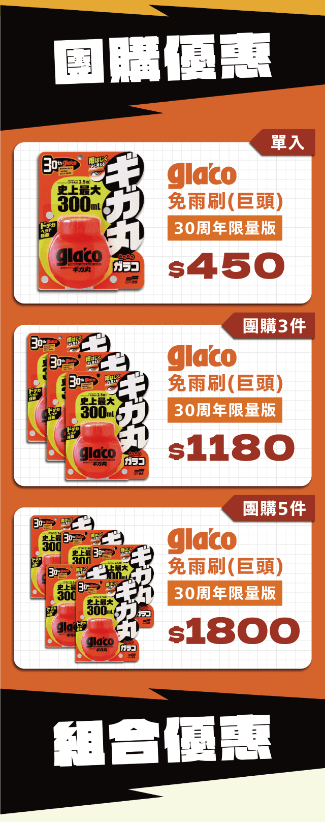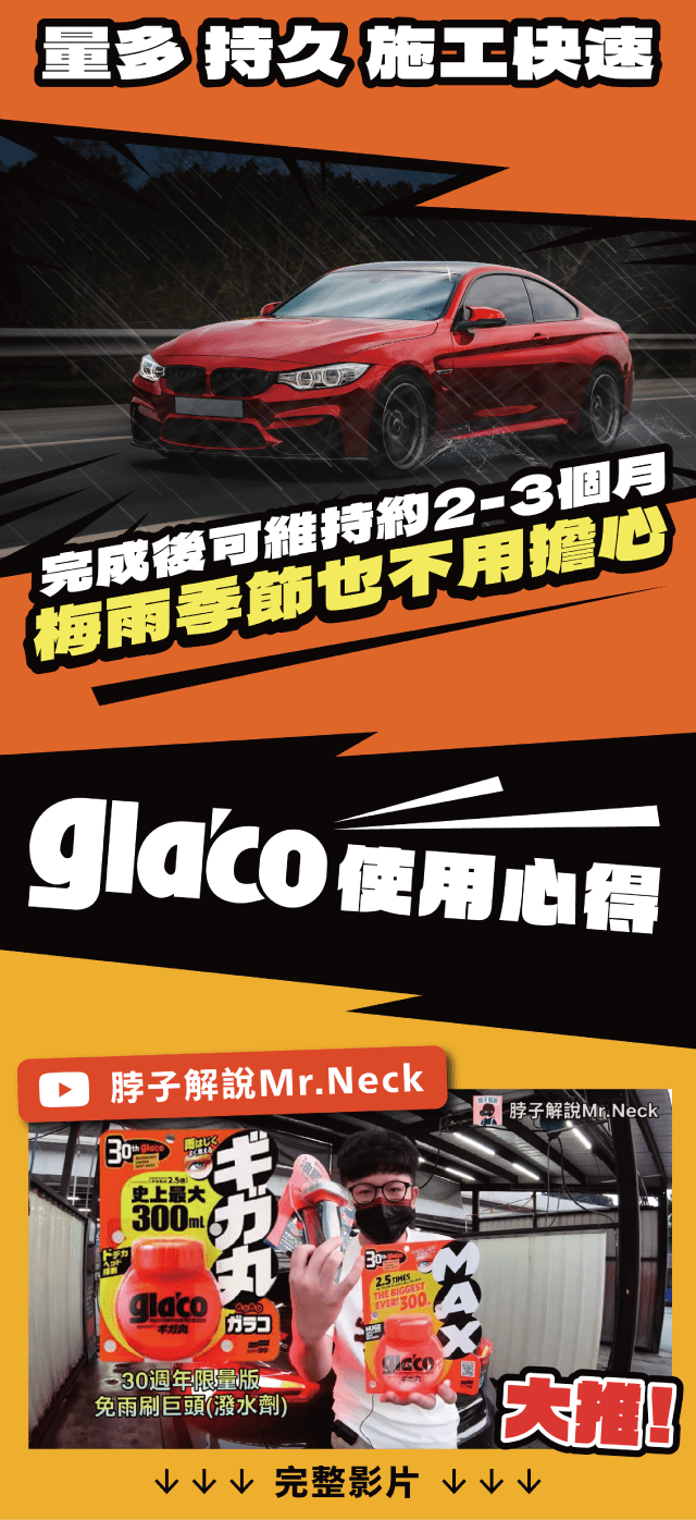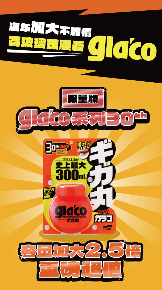● gla'co史上最大容量300ml,普通車前擋玻璃約17片。