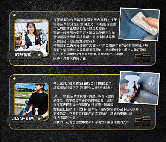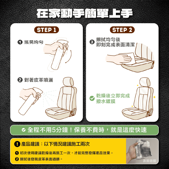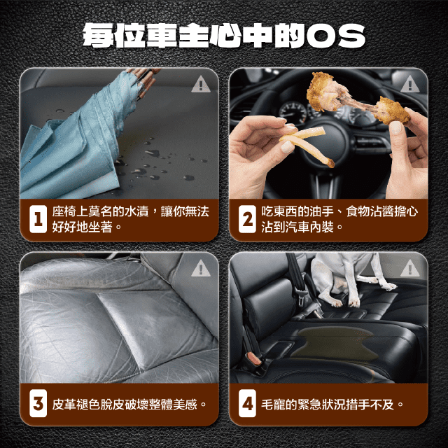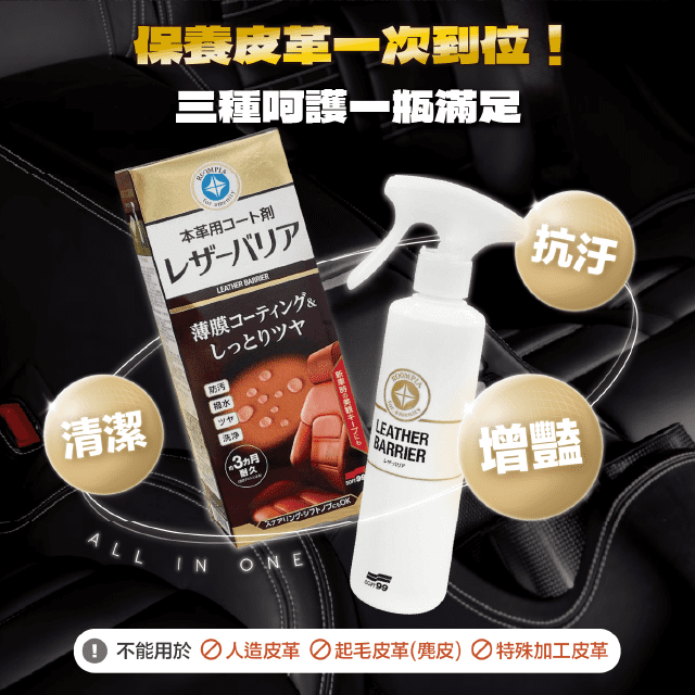 ● 採用LP高分子,完全貼合皮革起伏的紋路,防止油汙沾附、衣物退色沾染等情況,更容易清潔。