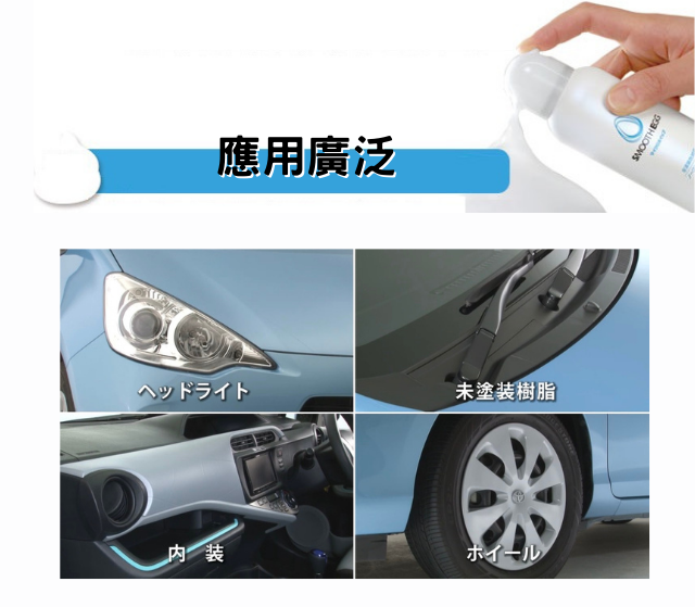 A7: 大燈、內裝、未塗裝樹脂、輪圈都可以使用,但是請避免使用在玻璃上。