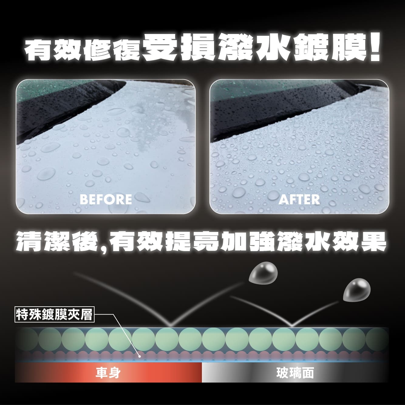 修復鍍膜重回高效潑水效果,清潔保養一次完成