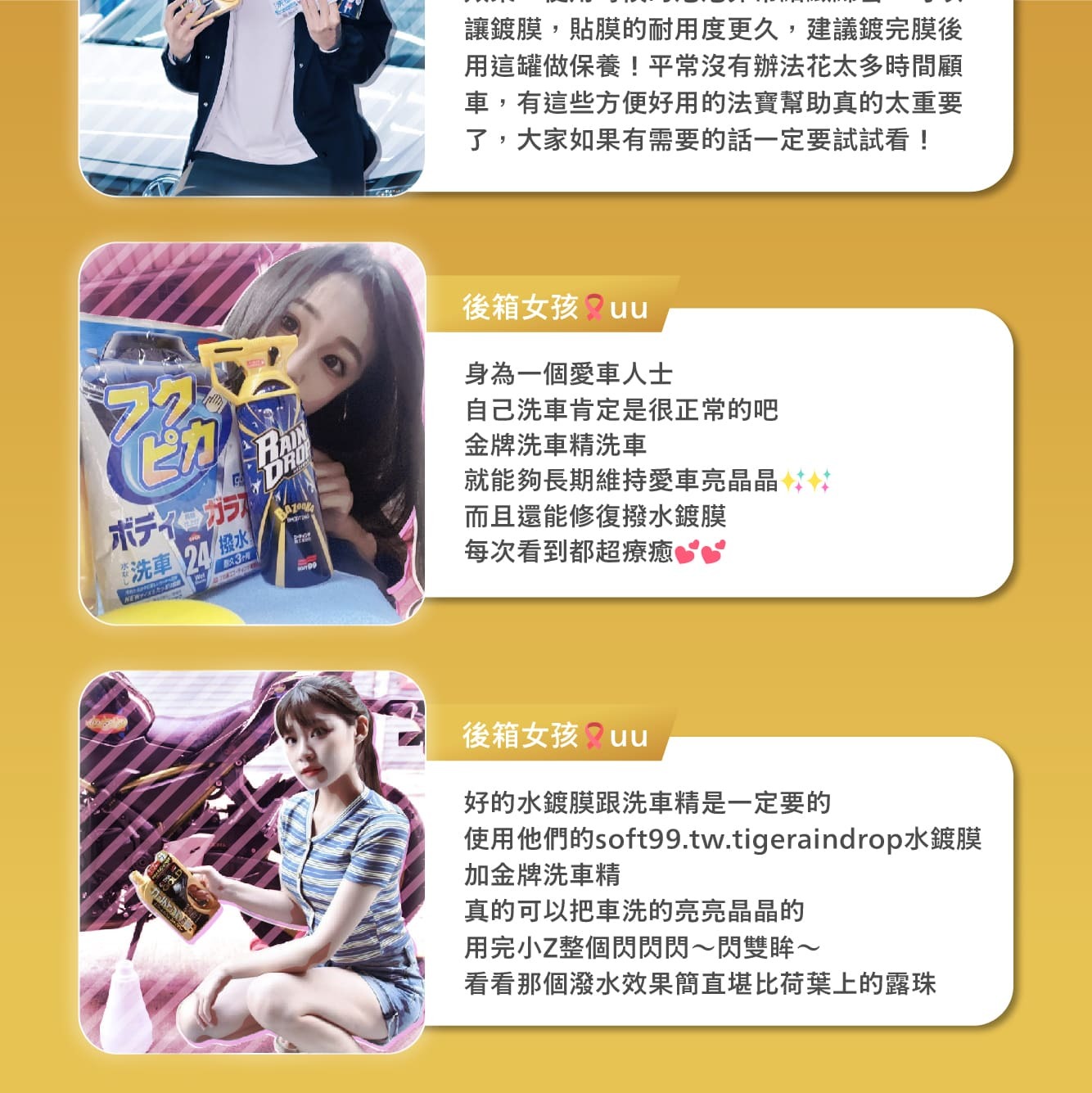 *使用量過少或依鍍膜的狀態,將影響預期效果。可以增加使用量和洗車次數。